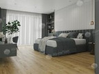 SPC-ламинат с благородной суперматовой поверхностью: мягко рассеивает блики, подчёркивает текстуру «под дерево» и выглядит дорого даже при ярком свете. Плавающая укладка на замок click, 4-сторонняя фаска и тиснение в регистр создают аккуратный, «паркетный» вид.